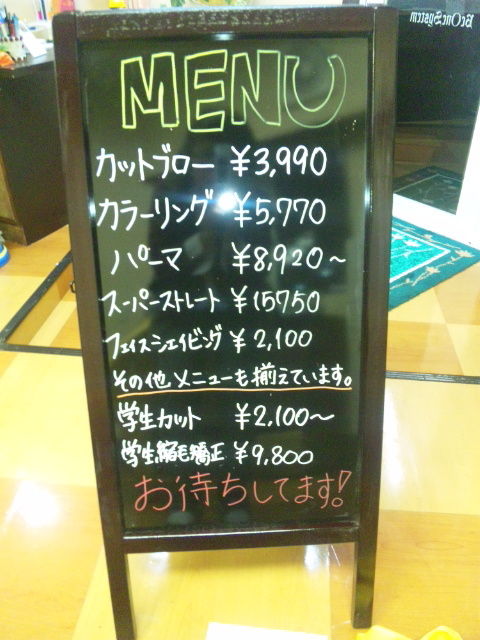 2010年10月24日 作成 雨で、ぐっちゃぐちゃになってしまったので、書き直しました このメニュー表が外にあったら是非お越しください ゆったりとした空間、ときにはバタバタしないように静かに行動してますけど、癒しメニューも豊富です 是非当店へ~〓 「ブログ」カテゴリの最新記事 < 前の記事次の記事 >