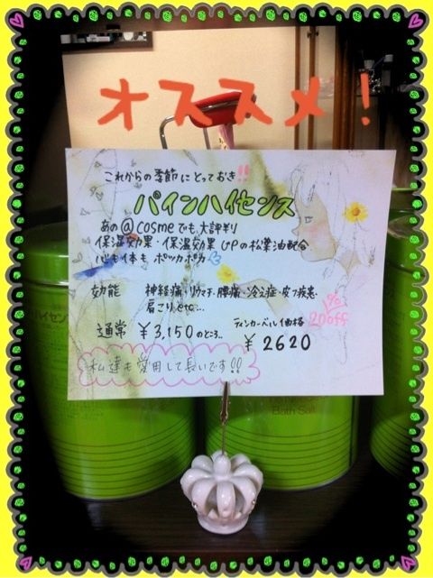 2012年11月09日 これからの季節にはモッテコイ‼ な入浴剤『パインハイセンス』 うちでも愛用してますが、本当にいいですよ! お風呂から上がっても身体がポカポカ‼ お肌もスベスベ! 冷え性の私にはありがたい 通常3150円のところ、当店限定価格の20%OFFの¥2620で販売致します 身体を冷やすのは天敵! 平熱36.5℃に保つためには身体を温めることからはじめましょう! iPhoneからの投稿 「当店イチオシ商品」カテゴリの最新記事 < 前の記事次の記事 >