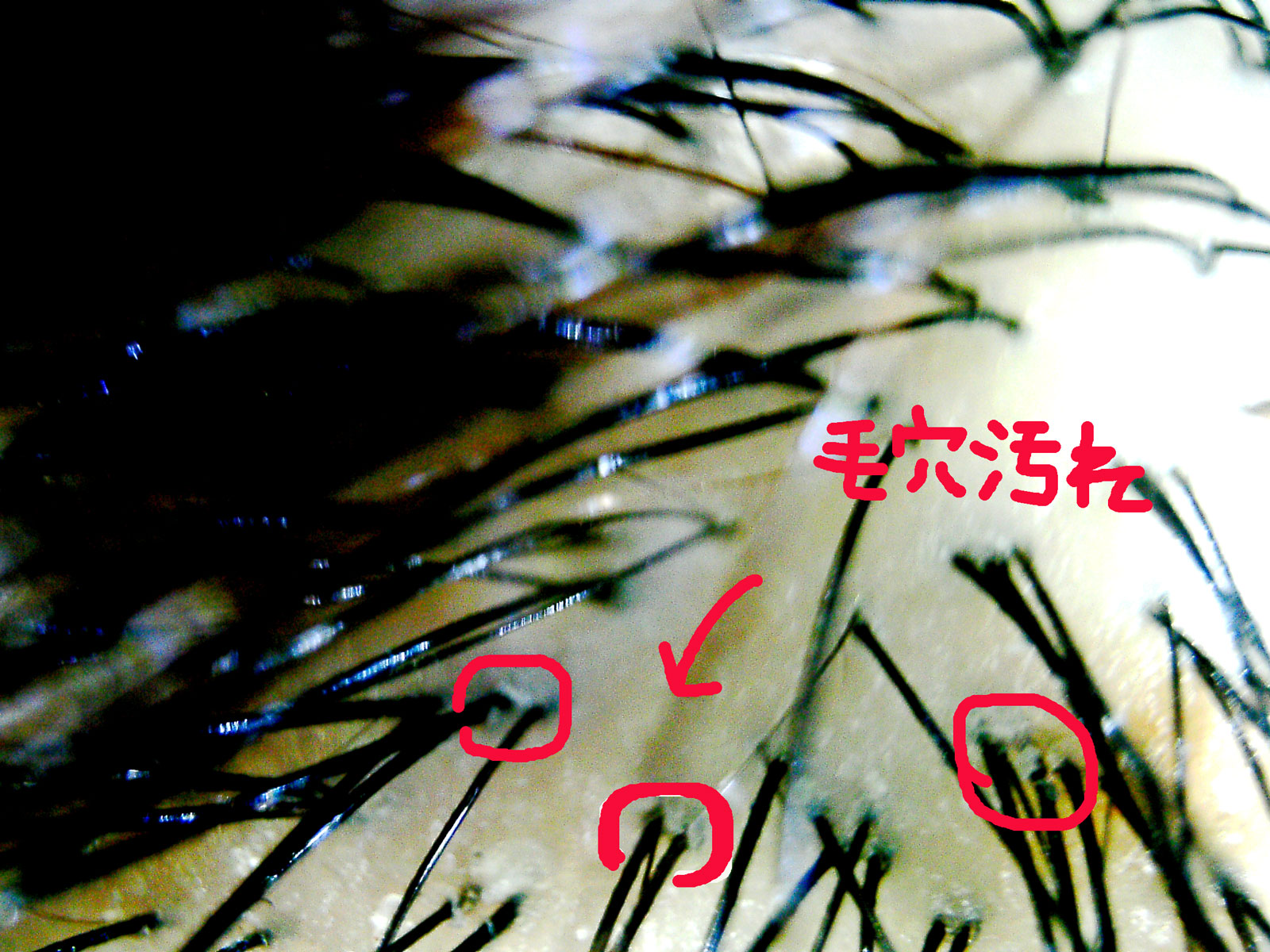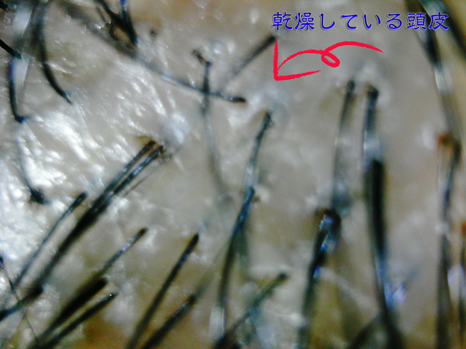 頭皮の表面がカサカサしているのがわかりますか?毛穴の周りも穴はきれいに開いているのですが、