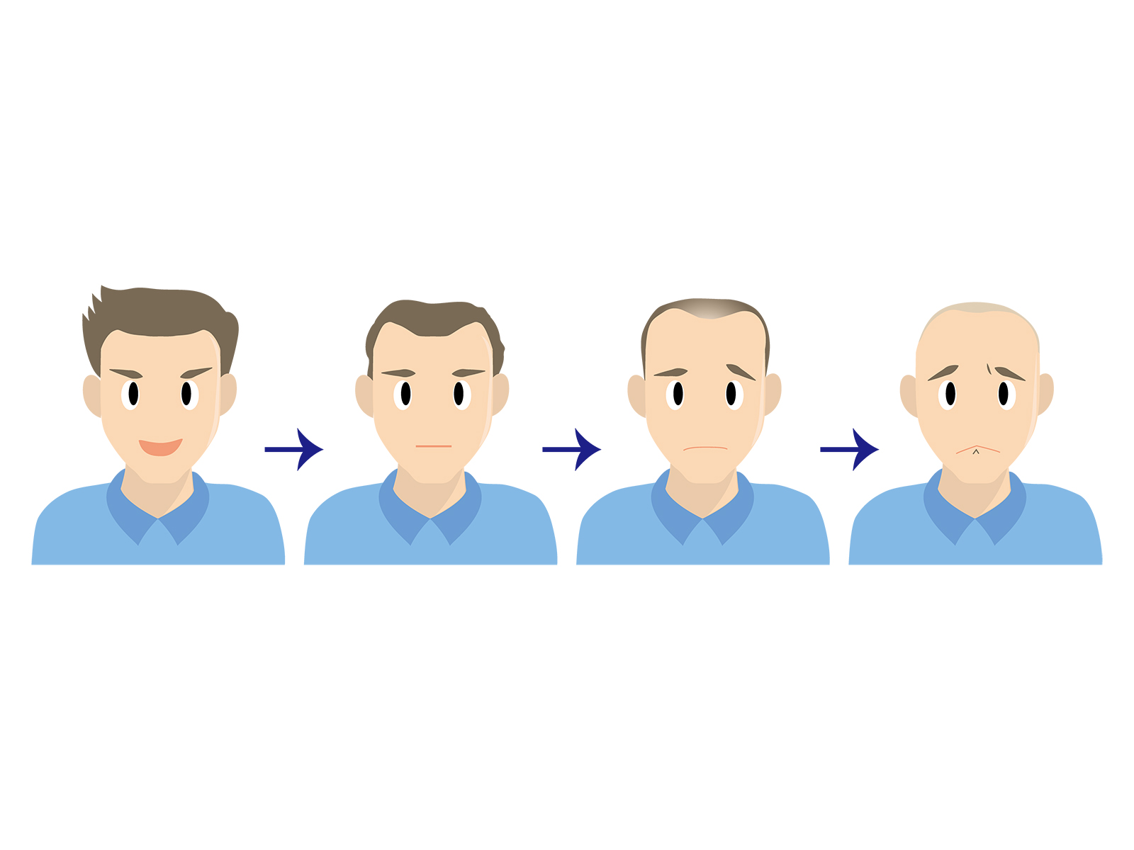 この写真の男性のように、ふさふさなお髪からツルツルになるのではなく、この逆に外見も内面も若返るというのを目指して一緒に頑張りましょう!
